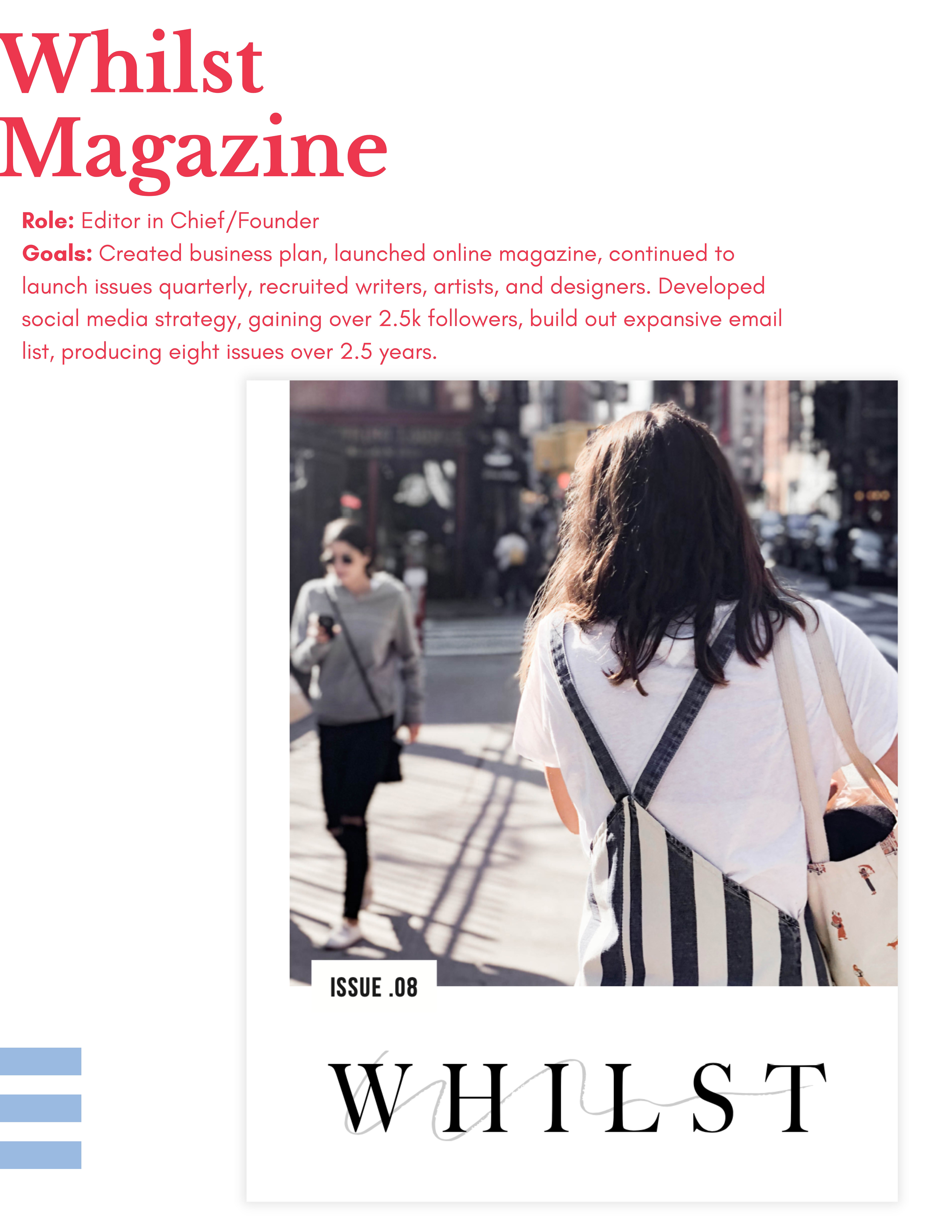 Brand Strategy, Editing, and Art direction for Whilst Magazine